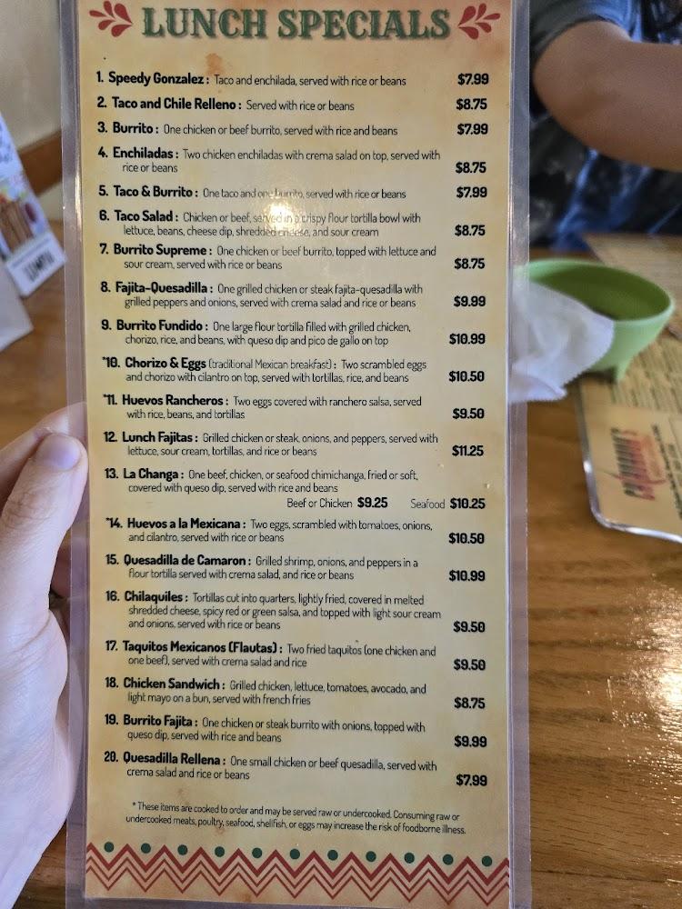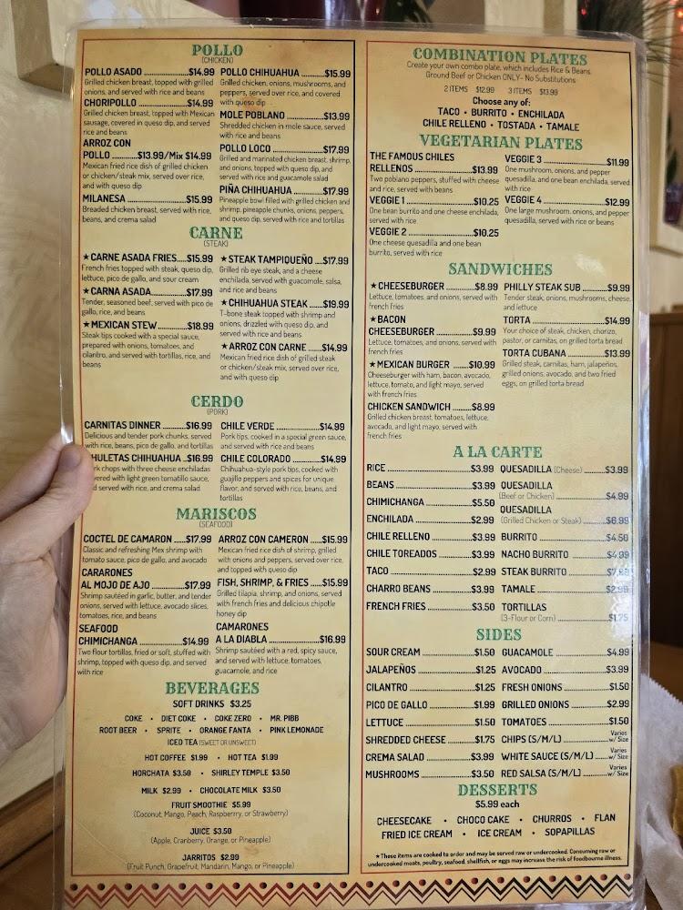Vegetarian options abound as well, with dishes like Veggie Fajitas and the Famous Chiles Rellenos on offer. This makes it inclusive for all types of diets.